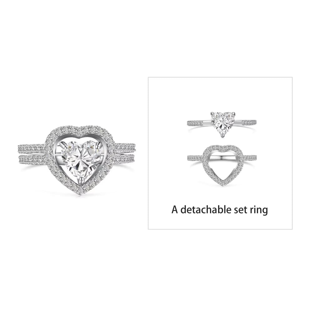 | The Indirya Amoria Set is a romantic fusion of elegance and versatility. This trendy statement ring features a dazzling 5A cubic zirconia in a heart shape, crafted from rhodium-plated 925 sterling silver. Its unique detachable design allows you to style it as a single ring or a matching set. Perfect for anniversaries, weddings, or heartfelt gifts. Designed for women, children, and unisex wearers. Custom mould and sample services available. |